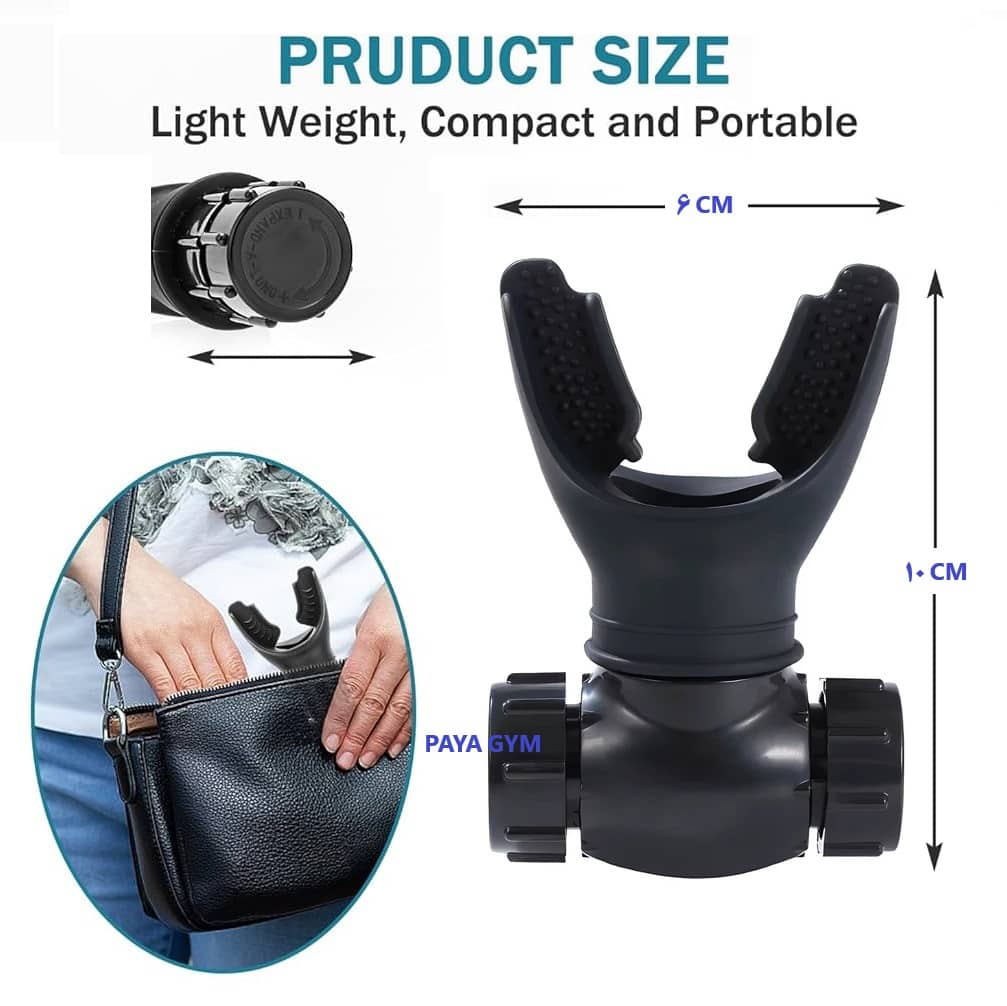 دستگاه تقویت تنفسی مدل بریزر معرفی شده در این بخش از سیلیکون نرم و منعطف ساخته شده است که هیچ حساسیتی با لثه ایجاد نمیکند کامل در دهان جفت میشه و لغزش ندارد. طراحی این وسیله به نحوی صورت گرفته است که میتونید مقاومت هوا رو به داخل ریه بیشتر کنید و تمام بافت های عمیق ریه رو فعال کنید تا بتونید از حداکثر پتانسیلتون توی تمرین استفاده کنید و طولانی تر ورزش کنید.