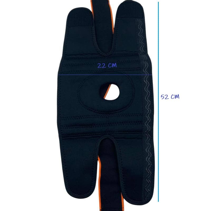 ابعاد باز شده زانوبند نیز طول 52 سانتیمتر و عرض 22 سانتیمتر می‌باشد.