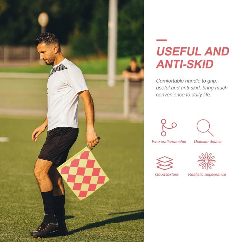 دسته این پرچم از آهن مقاوم با روکش فوم ساخته شده که هم دوام بالایی دارد و هم هنگام در دست گرفتن، احساس راحتی و تسلط بیشتری به داور میدهد. طراحی این دسته باعث جلوگیری از لغزش در دست شده و حتی در شرایط آب و هوایی نامساعد، عملکرد بدون نقصی ارائه میدهد. طول 46 سانتیمتری این پرچم، اندازهای ایدهآل برای دیدهشدن در زمینهای ورزشی مختلف دارد و به داوران این امکان را میدهد که با حرکات واضح و دقیق، پیامهای خود را به بازیکنان و کادر فنی منتقل کنند.